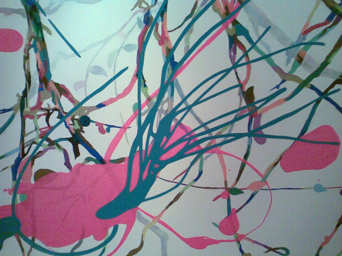 El rigor ascético de una parte y el delirio technicolor de la otra se balancean y todos quedamos contentos. French gray y Process Red, mechones de pelo y cerezos en flor, mustio minimalismo y pulsante psicodelia, todo en alegre convivencia sobre lienzos tan blancos como las paredes de toda buena galería de arte. Bastante más agraciadas de lo que se ve en estas fotos (gracias, Nokia; mejor ir al Flickr oficial), todas estas piezas merecen ser vistas en vivo y bien de cerca, especialmente las grandes. Two thumbs, way up; two snaps and a salute.