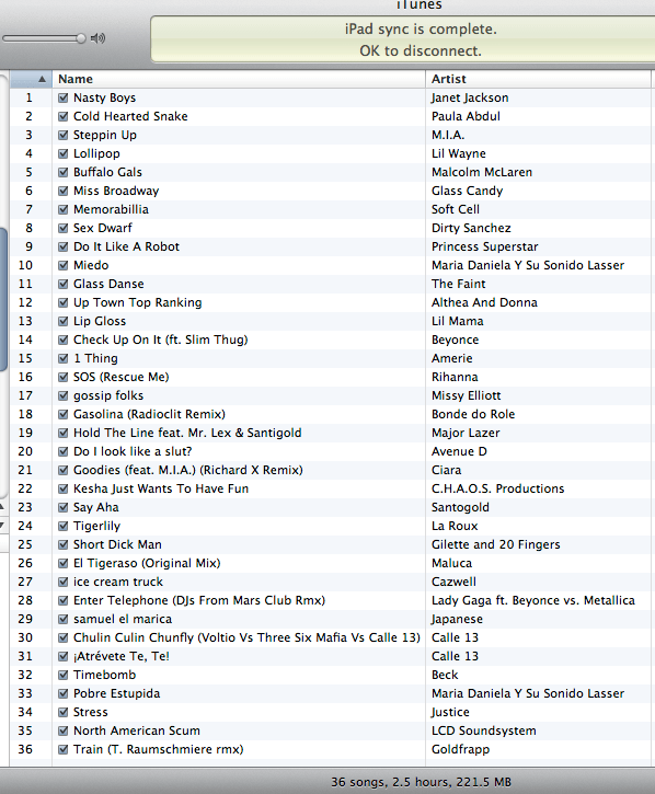 Documentación de la fiesta okupa sabatina. Dice mi iPad, que amaneció lleno de cera de vela, que este fue el set. Dos horas y media se pasan volando.