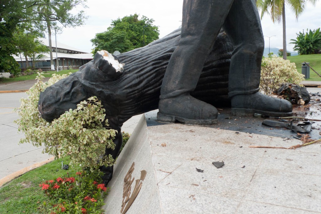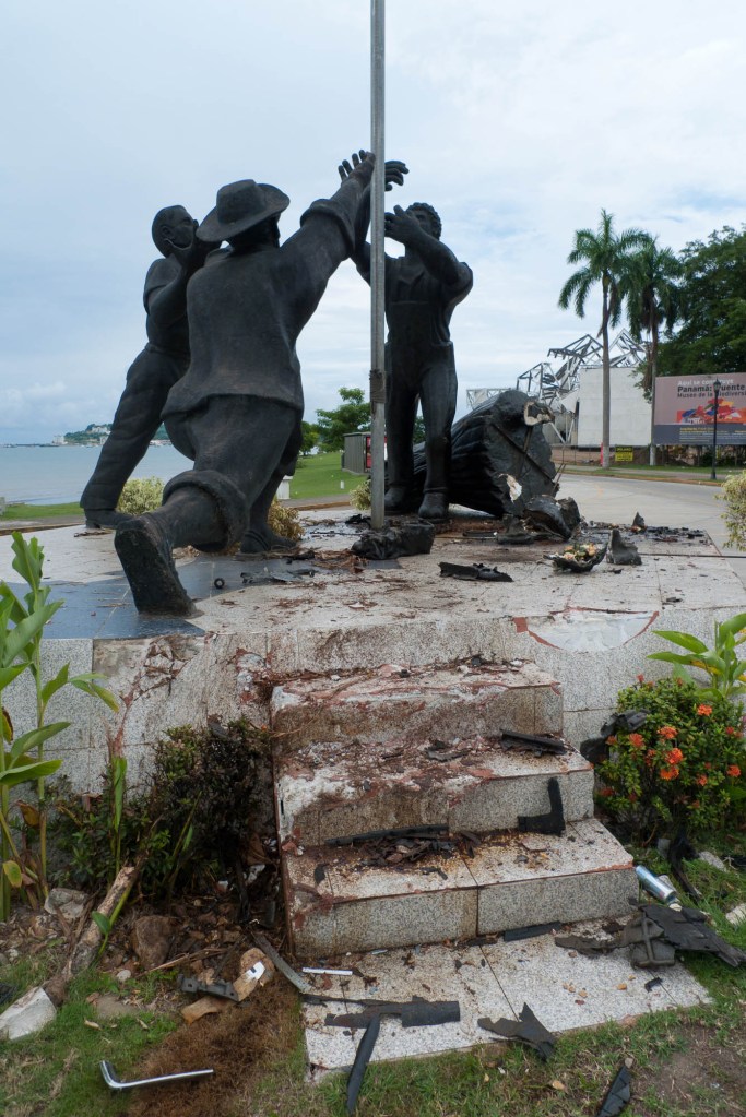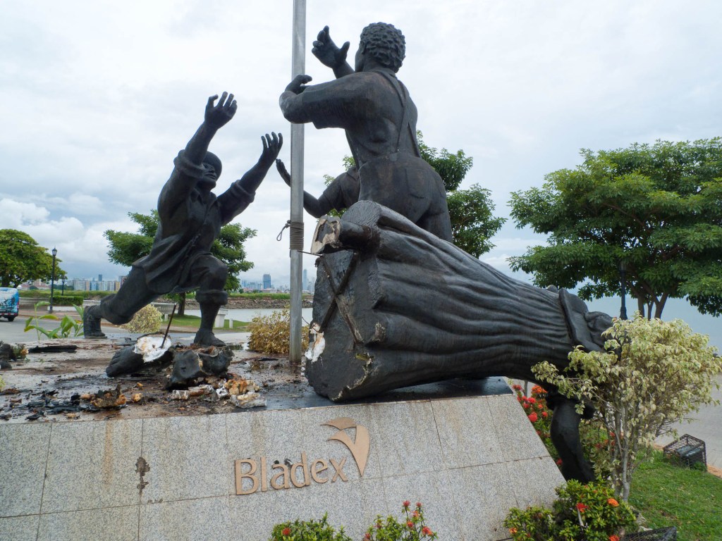 A veces las semanas empiezan bien. Esta mañana nos encontramos que el monumento que sufro rumbo a mi oficina desde el 2007 estaba 25% derruido. Específicamente, la dama indígena vestida con una nagua Ngäbe estaba volcada de lado, manca y derramándose del plinto.