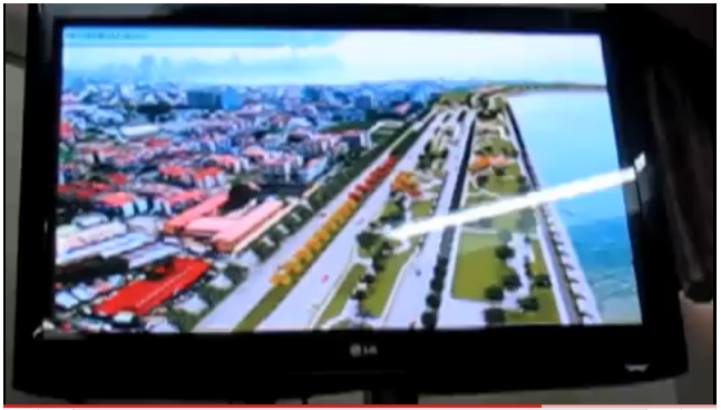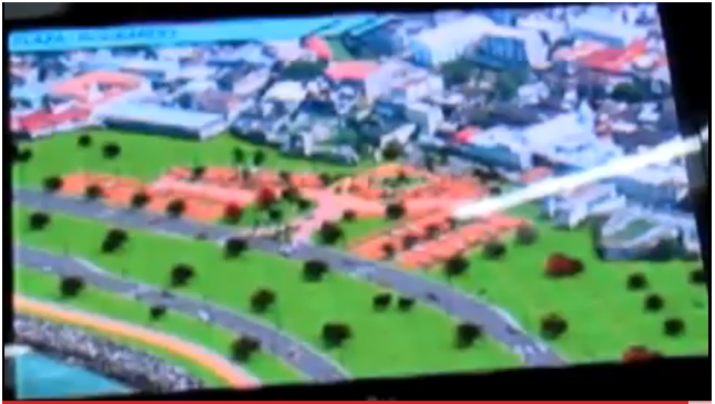 “Luego tenemos una vista de cómo quedaría la para observar la muralla de la ciudad al final del Casco Antiguo desde el relleno con área verde y todo lo que se pretende construir si en tal caso fuese la opción B.” [Porque desde arriba de las Bóvedas no se pueden ver las murallas, y eso hay que solucionarlo. Tampoco se pierdan la venia a la gente de Barraza de unos segundos antes, donde se hace la observación que ellos, por supuesto, “tranquilamente puede observar las murallas de la ciudad desde su sitio,” a diferencia de nosotros que estamos en “los otros lugares de la ciudad.”]