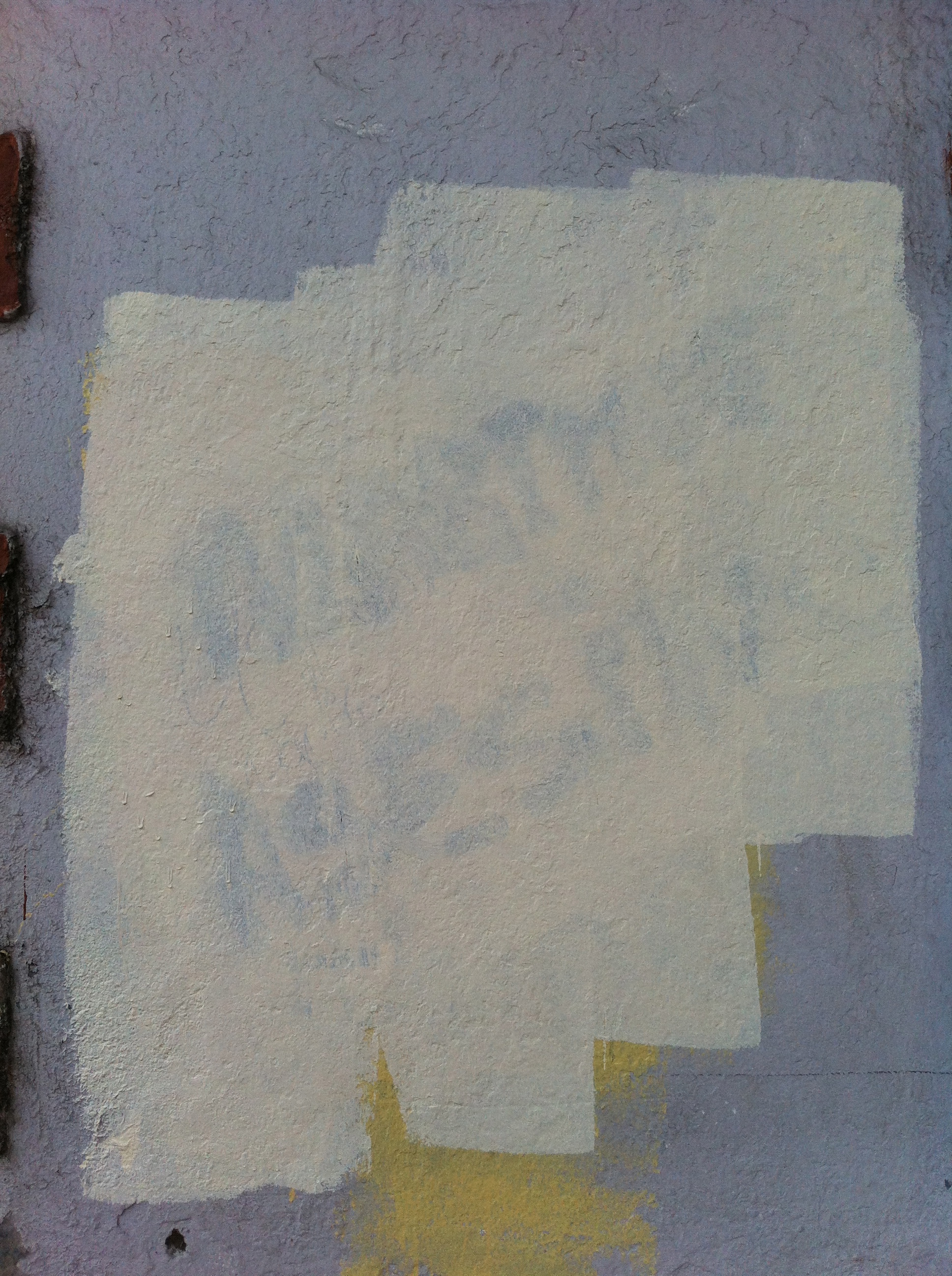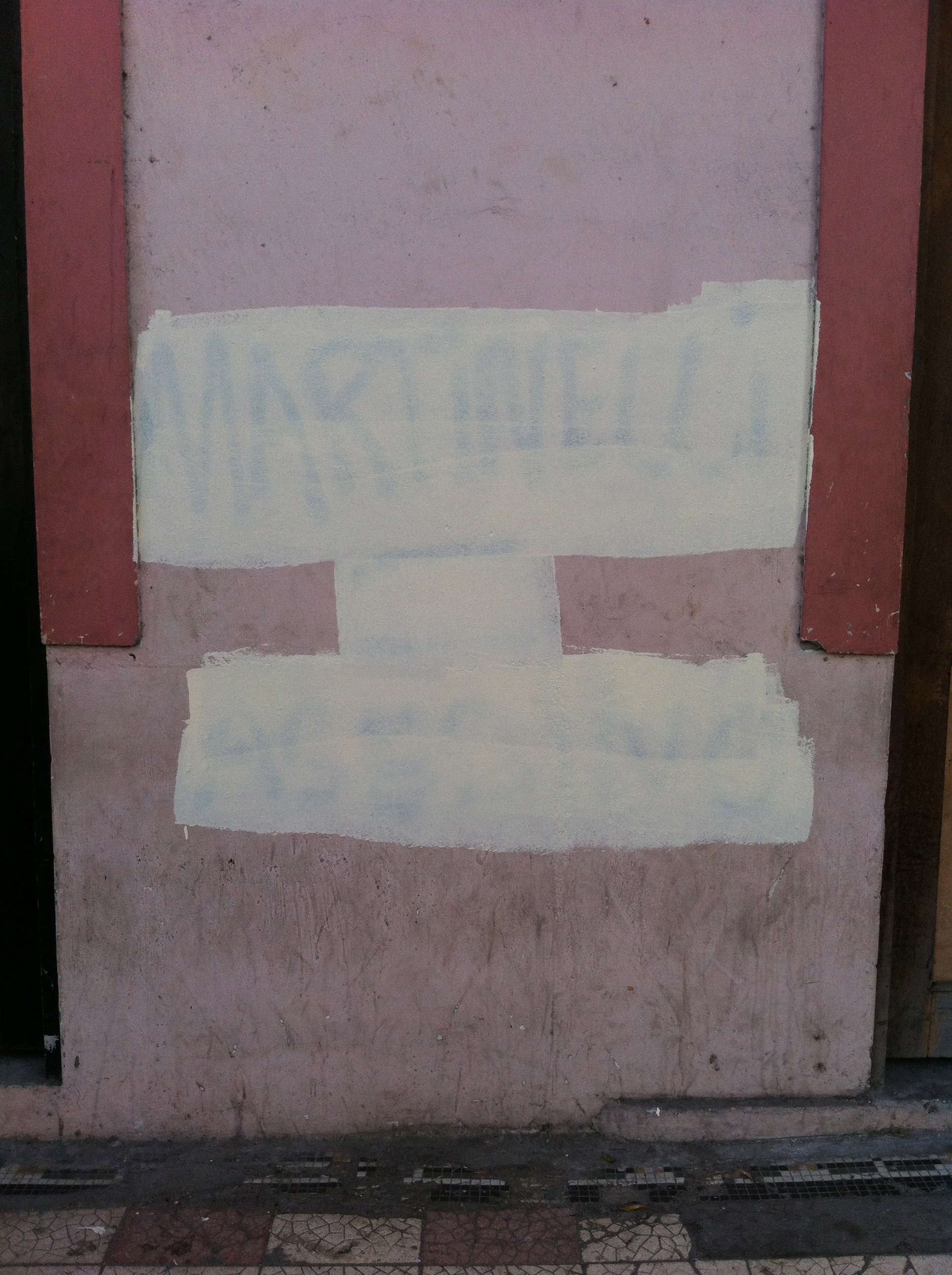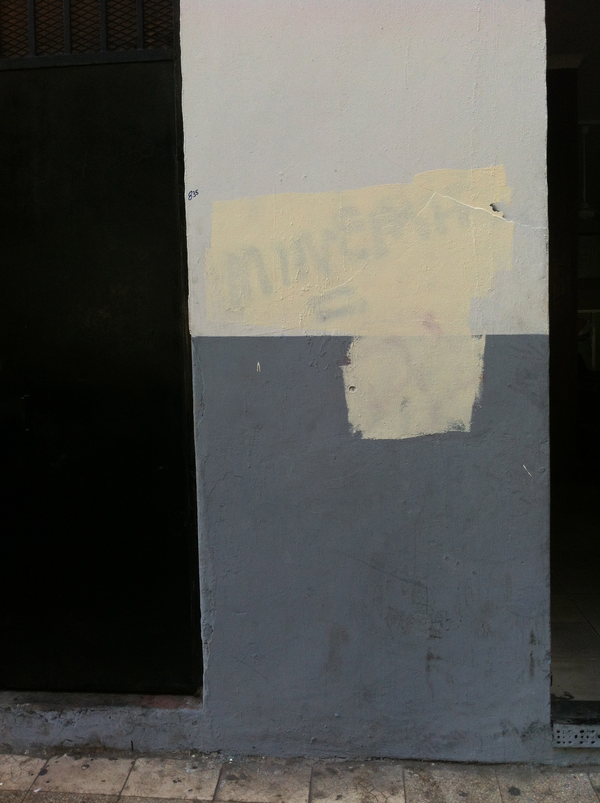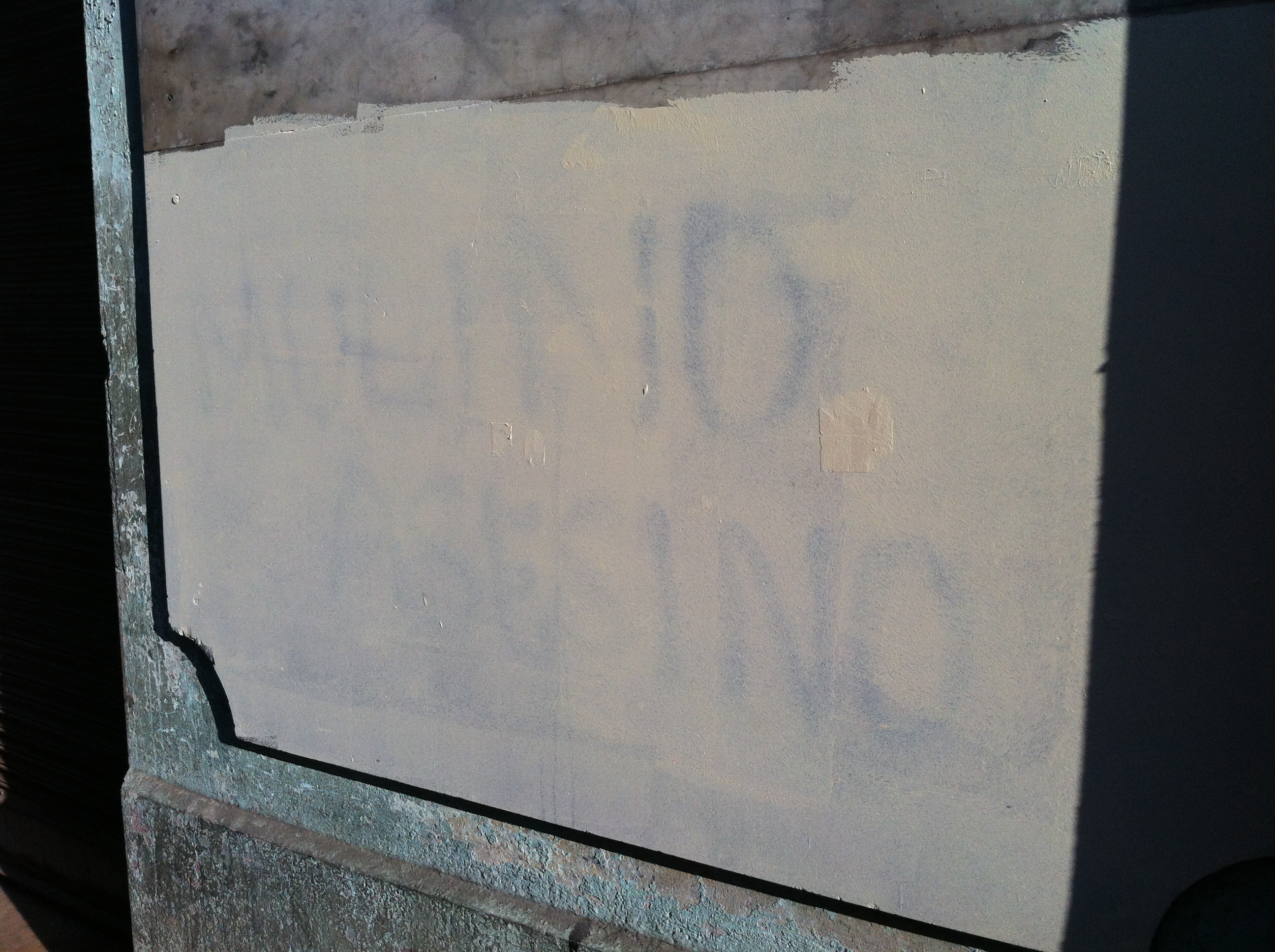 Problema resuelto, ¿no? Alguien debió advertir a los borrigueritos (¿rasos?) que ejecutaron esta operación de Liquid Paper urbano que una mano de pintura es pocas veces suficiente para censurar del todo un mensaje ofensivo. Eso y que pusieran cuidado que no se les pasara ninguno.