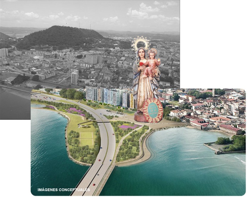 No, yo creo que eso sí lo, lo tenemos que a-aclarar. Incluso el 17 de, de septiembre vamos a tener una, una conferencia de prensa para, a mí, las cosas son, son muy claras. Tal vez se ha malinterpretado un poco cuando el Señor Presidente muy alegre y agradecemos esa disponidad (?) anunció esto. Esto es, es un proyecto que viene de, de hace muchos años de un grupo de, de católicos de, de hacer una esfinge, una estatua de, de Santa María, la-la Antigua, y a raíz de este acontecimiento se-se ha unido el Comité de los Quinientos Años con el Comité de los Quinientos Años del Descubrimiento del Mar del Sur. Es cierto, hemos, hecho, acercamientos con el gobierno para sobre todo ubicar el terreno. Yo sí quiero que tener claro. El gobierno como tal lo que daría es el lugar. Lo más probable que sea Chorrillo. Es del Comité. Claro, con la ayuda del gobierno en ese sentido de que las tierras son de ellos. Lo más probable que pudiera ser en El Chorrillo. Y creo que, sé que esto va a causar opiniones. Sí, sí y no. Y de eso sí puede. Yo creo que los fondos vendrían de, de empresas privadas y de católicos que están dispues… y también de la perspectiva. No, no que queremos hacer eso por gra… Yo creo que la realidad es realidad, el Evangelio llegó aquí de la mano de María. Incluso desde la perspectiva de que nuestro país es como atractivo turístico. Va a haber incluso dentro la base un museo de los quinientos años del mar del sur y un museo también de cómo surgió esta iglesia, que salió de la mano de María el Evangelio.