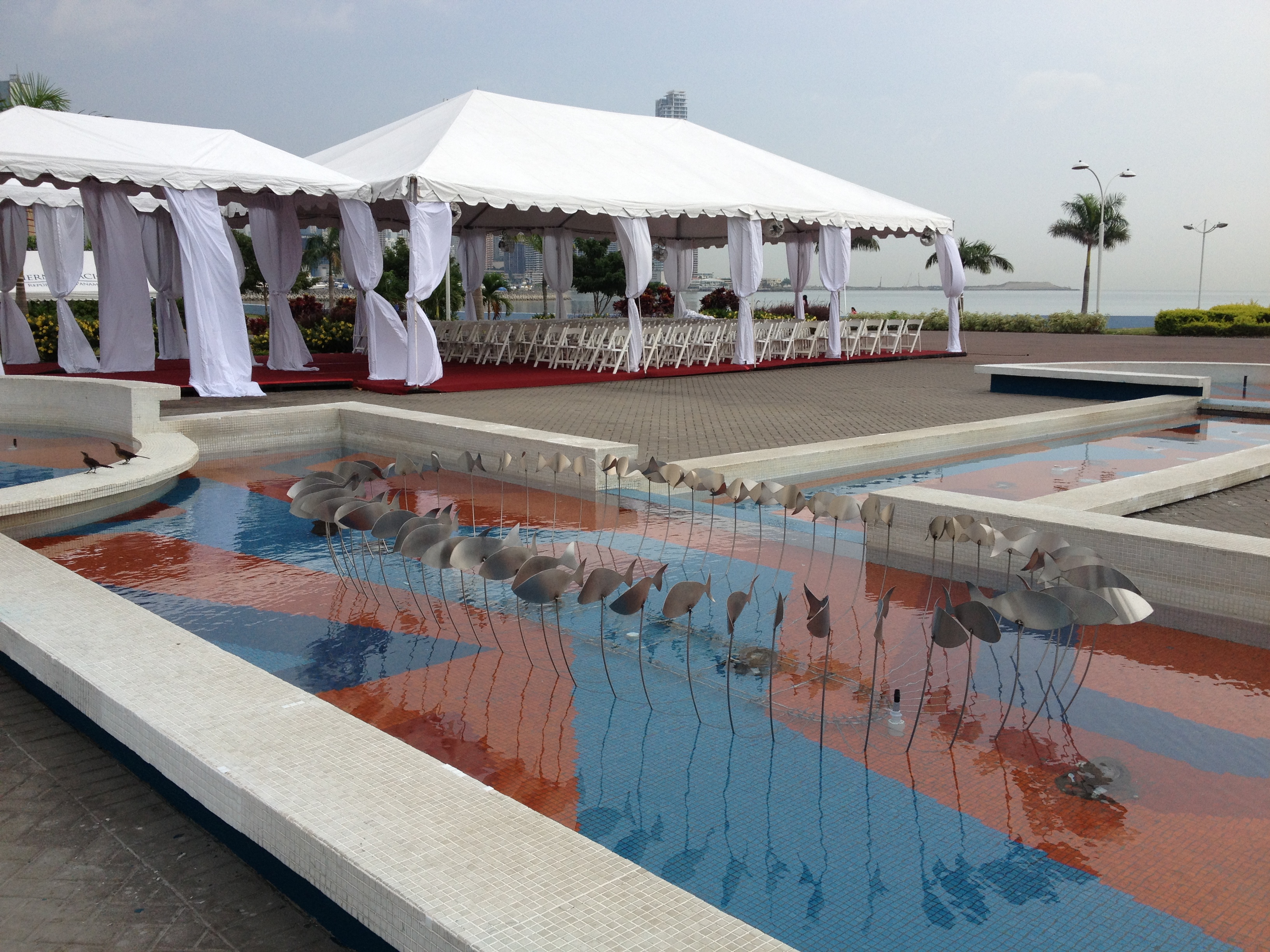 No me crean, pero yo digo que el evento de la inauguración va a ser hoy mismo. Lo deduzco por las carpas blancas y las alfombras rojas, y porque el monumento evidentemente todavía no está terminado. Habrá que ver las noticias y el website de la presidencia para ver qué nuevo megaproyecto nos revela el Señor Presidente durante la inevitable segunda mitad cándida y casual de su discurso inauguratorio.