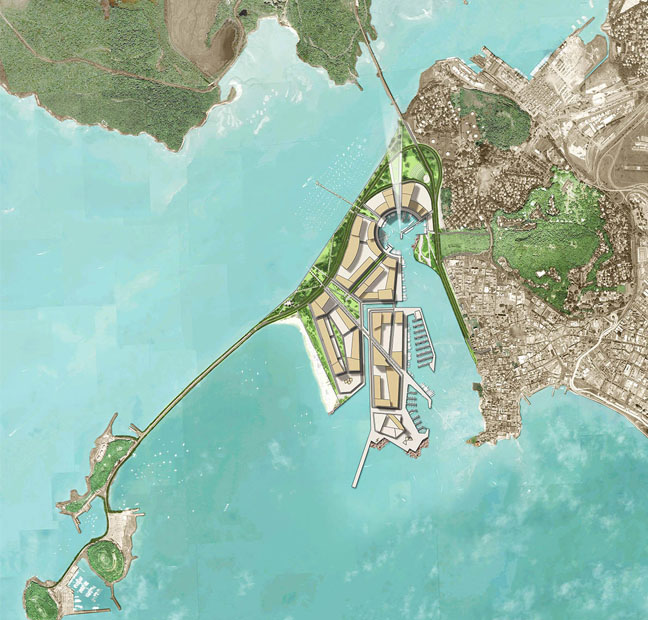 Sí, islitas y todo. Un detallito faltante es la Cinta Costera III, que ahora casi tocaría el segundo de los rellenos propuestos. Parece que ni HKS tenía acceso a MOPdebrecht.