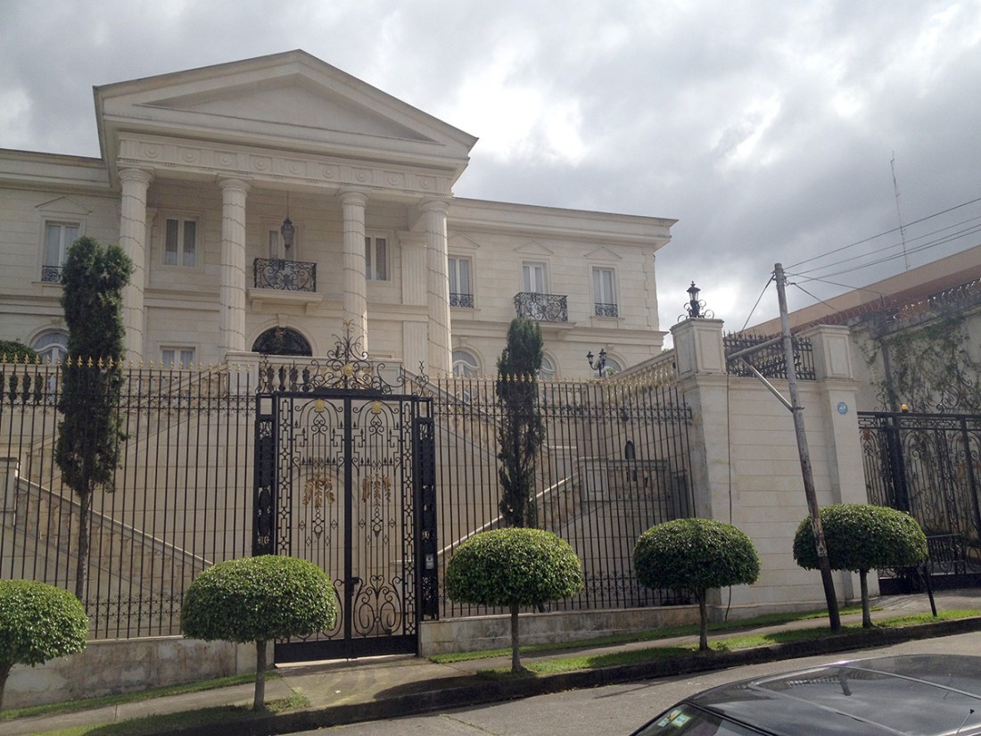 A tal hipótesis podría agregar, incluso, la razón de que tal «arquitectura» no prosperara más de lo que lo hizo, pues sus ejemplos, si no son escasos, tampoco tienen la fuerza y extensión cuantitativa de su equivalente nuevo-rico actual, que es el ‘rostipollesco’ precisamente. Esa razón sería -recordémoslo siempre los buenos costarricenses-, el nefasto gobierno de Rodrigo Carazo Odio (1978-1982), que sumió al país entero en una crisis como desde los años de 1930 no conocíamos los pretendidos labriegos sencillos. Se me responderá que esa seudo-arquitectura aparece también entre «buenas familias»… a lo que yo respondería por adelantado: recuerden que el mal gusto es socialmente transversal, que como las pestes no respeta barreras sociales, menos en un país azotado por una crisis que pasó de ser económica a ser de valores… y que a juzgar por el perfil urbano que los años setenta y ochenta nos heredaron, abarcaba a los valores estéticos entre ellos. Al ‘rostipollesco’ por eso, me referiré luego, en otra ocasión.