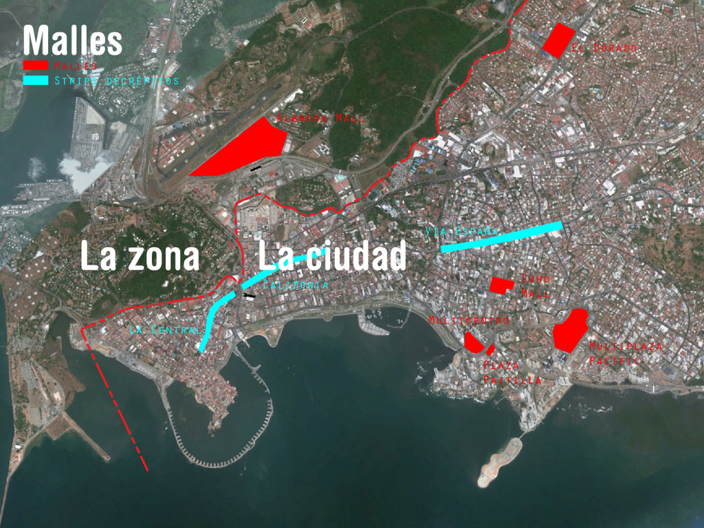 Tesis: Panamá es una ciudad que son dos ciudades que crecieron dándose la espalda por 75 años, cada una de su lado de la frontera entre Panamá y la Zona del Canal. De hecho, Panamá puede también verse como una acumulación de enclaves colindantes pero distintos, así que más que una ciudad con trastorno afectivo bipolar F31, debíamos hablar de trastorno de identidad disociativo F44.8 (née desorden de personalidad múltiple), pero dejemos eso para otra disertación.