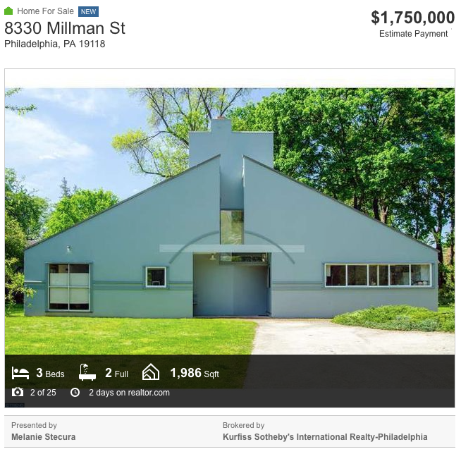 Sí señores, Mother’s House, la casa de Vanna Venturi (8330 Millman St, Philadelphia, PA 19118) está a la venta por $1.75M. Dice el listing: