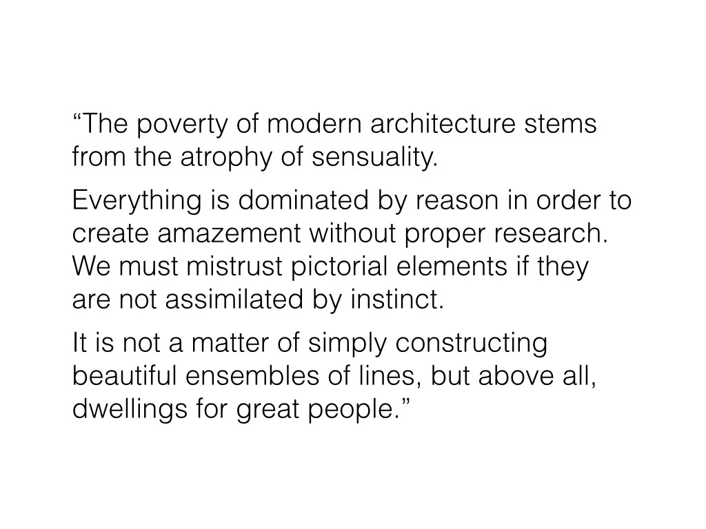Pero primero un caveat lector. Cuando yo era joven e impresionable, a la hora de decidir si volverme un blanco o un gris, sin titubear me le declaré a Robert Venturi. Mi biblia no fue Vers une architecture sino Complexity and Contradiction in Architecture, y en mi rebeldía de ignorante hice todo lo posible por mantenerme en la ignorancia acerca de todo lo que me oliera a arquitectura heroica-original franco-suiza. Pero, como dice el dicho, al Corbu lo que es del Corbu.