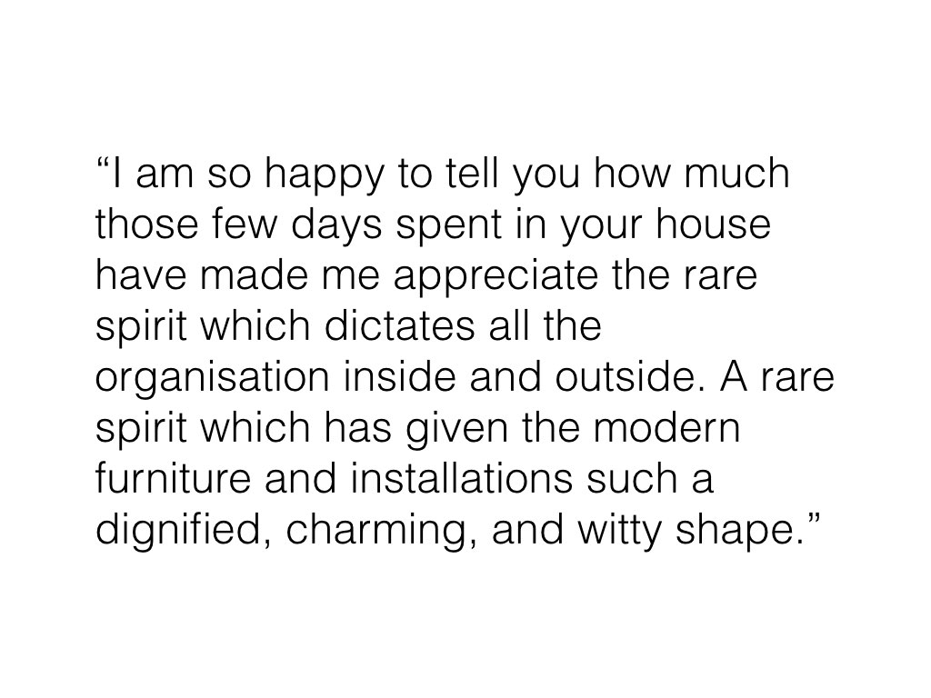 Después de esa primera visita, Le Corbusier le escribió a Gray para cubrirla de halagos y felicitaciones.