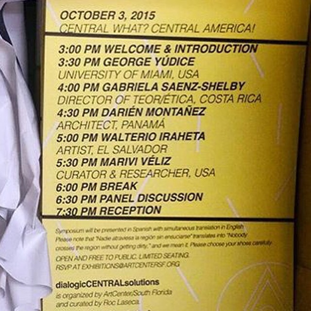 Para mis amigos stalkers del estado de Florida, les comunico muy orgullosamente que estaré esta semana participando de las actividades del ArtCenter/South Florida, culminando con una ponencia en el simposio Central What? Central America! as part of dialogicCENTRALsolutions Organized by Roc Laseca. Y dice:
