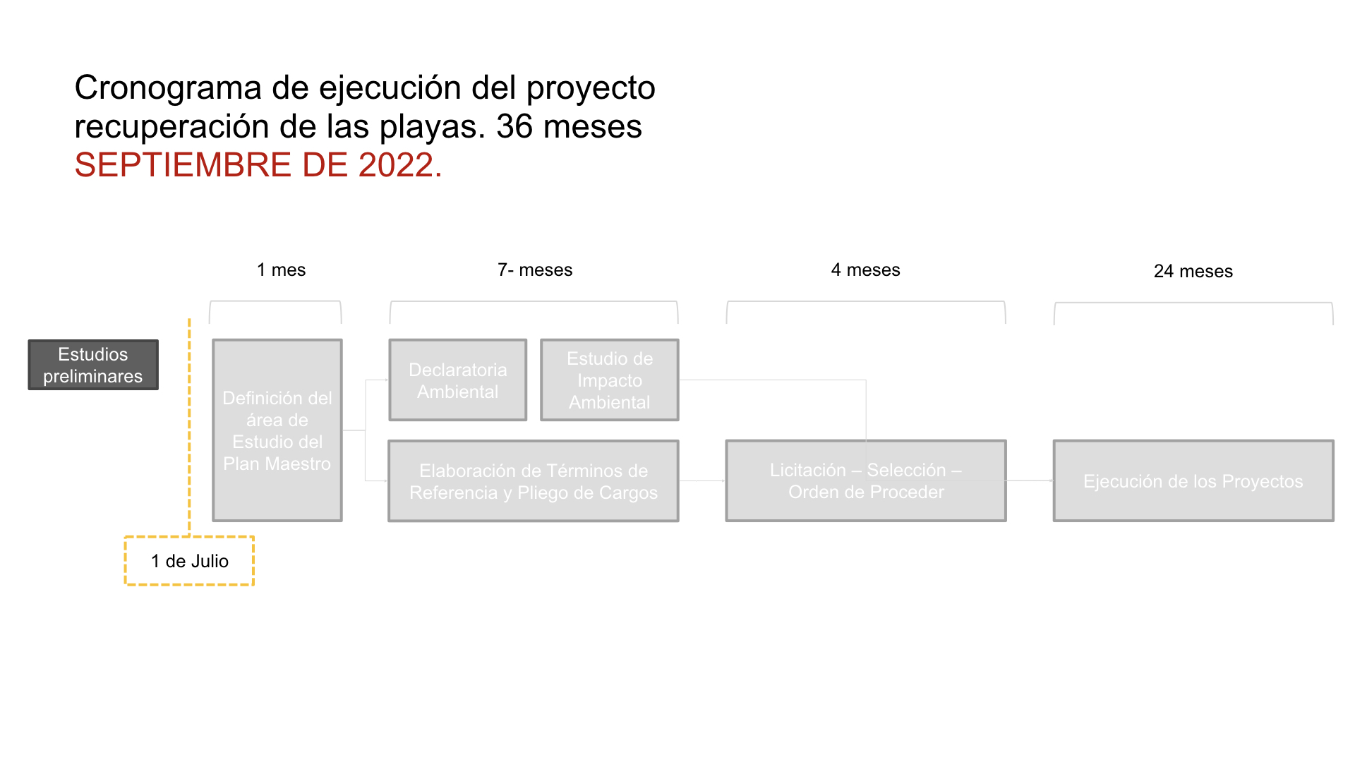 Tomás Sosa, director de Proyectos Especiales de la Alcaldía, dijo que el cronograma de ejecución del proyecto de recuperación de las playas está contemplado para una culminación en septiembre 2022.