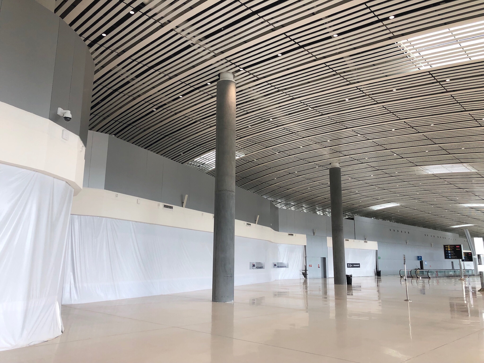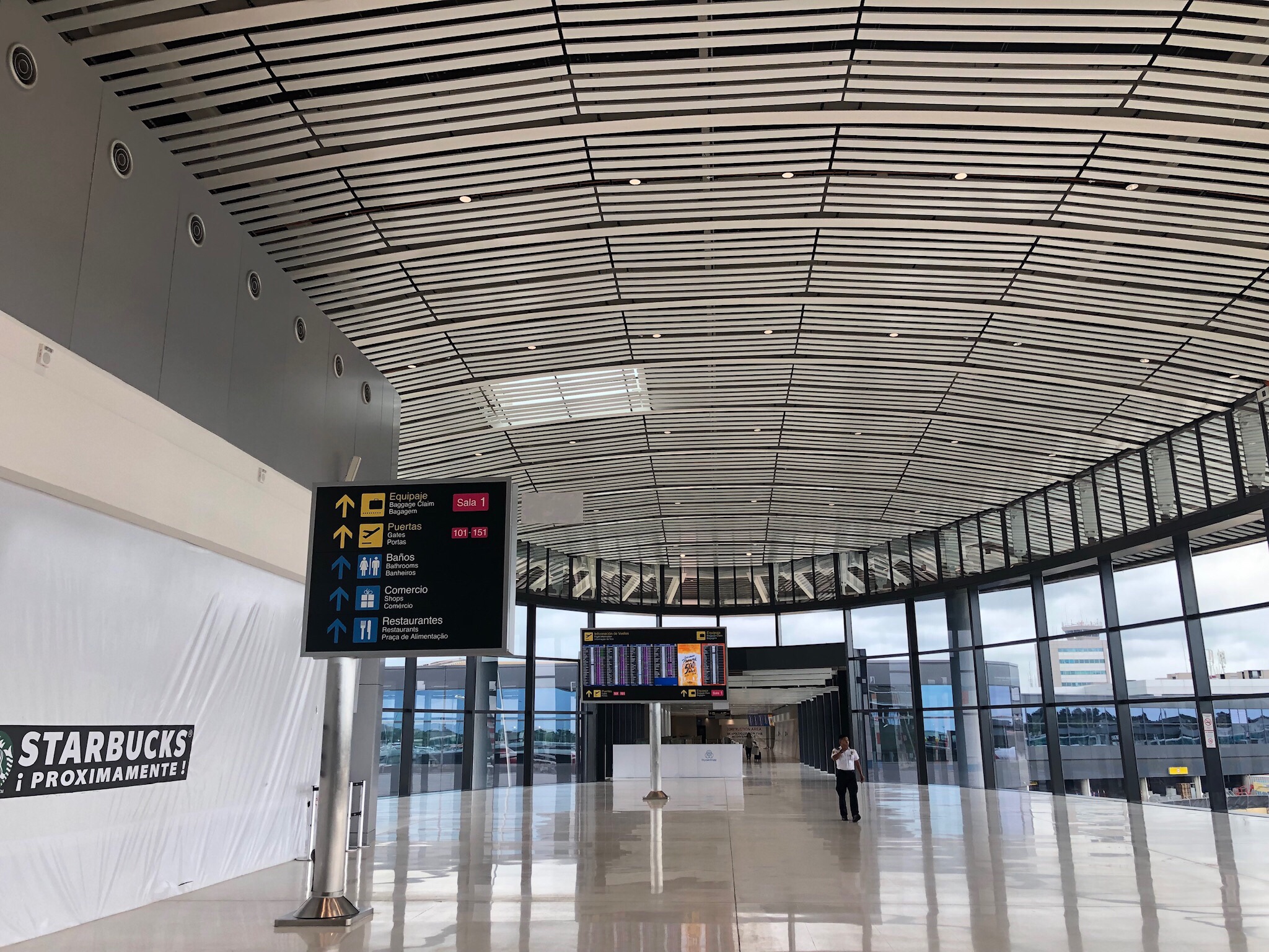 Otra cualidad notable es que la Terminal Dos huele a zapatilla nueva, al menos por ahora. Pero esto no es desagradable: el olor a zapatilla nueva está fuertemente asociado a recuerdos alegres de cumpleaños y quincenas. Este olor a nuevo seguro viene de las hectáreas de lona vinílica que separa las áreas que siguen en construcción, y que combinan súper bien con la materialidad del resto de los acabados: una sinfonía en gypsum y alucobond.