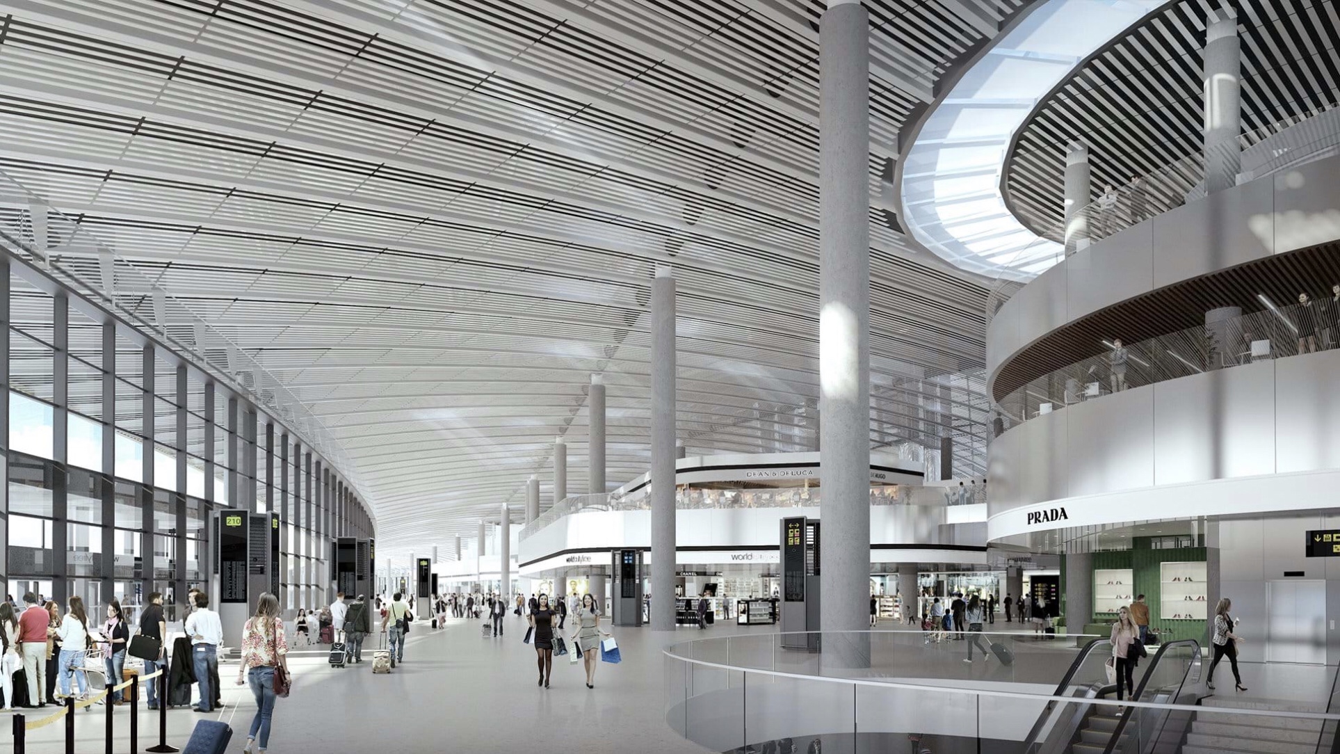 Lo primero que sorprende cuando caminas por el pasillo que conecta las terminales son las regaderas de luz cenital de los tragaluces, que atraviesan los costillares del cielo raso suspendido. Estando en un país donde lo que la gente quiere es sombra y aire acondicionado, estos hotspots son un guiño inteligente —además de una buena bienvenida— a este país donde lo que sobra es sol.