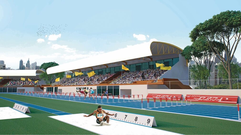 El Centro de Atletismo ha sido diseñado con una pista principal para el evento, y una de igual dimensión para el calentamiento. […] Su ubicación recomendada son los complejos universitarios, ya que sirven de captación y legado deportivo.