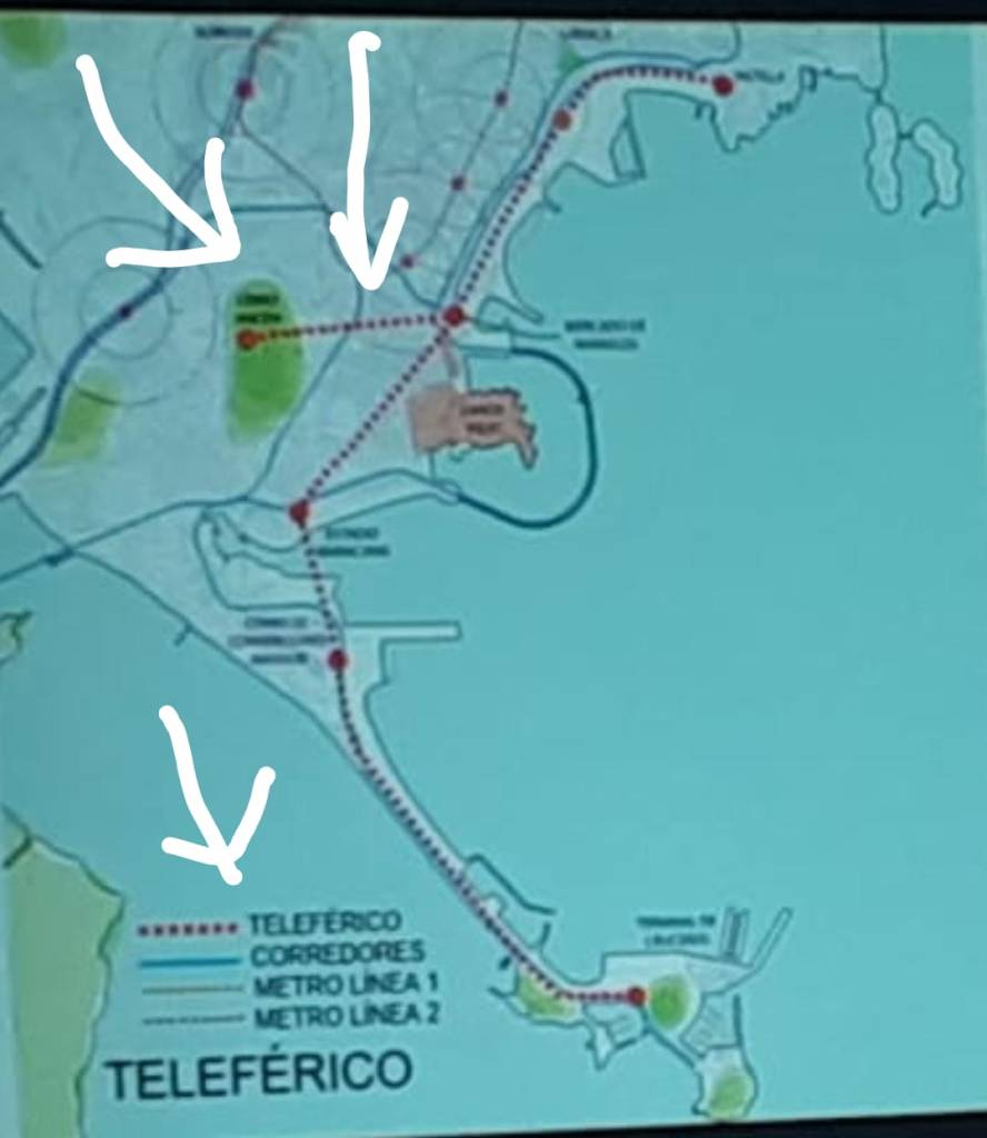 Y justo en ese momento me encontré este jpg que se le había caído a un camión que pasaba por la calle, y que muestra un teleférico que conecta a la futura terminal de cruceros con el río Matasnillo. Pero no se preocupen: