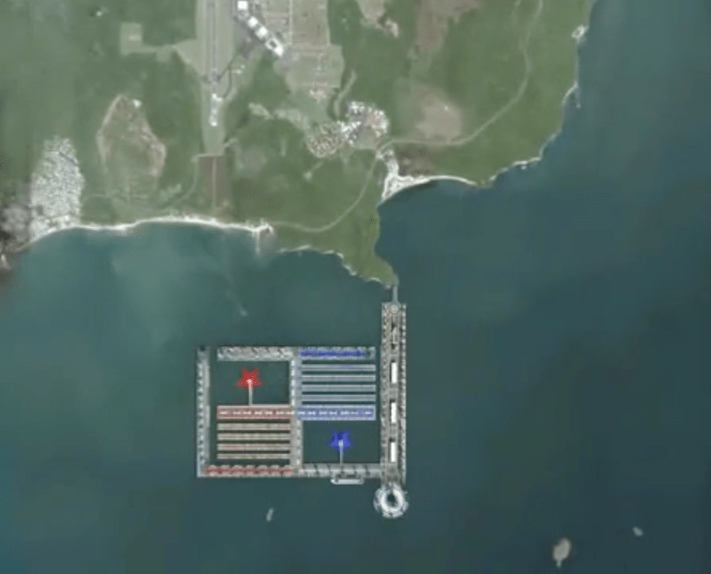 La construcción de la isla iniciará con la limpieza de la playa y su adecuación, que incluye convertirla en una playa turística similar a las de Europa: limpias, seguras, con infraestructuras como duchas, sombrillas, además de complejos turísticos como restaurantes y heladerías.