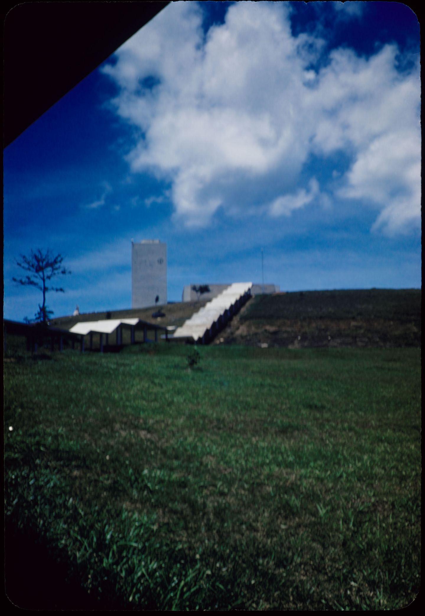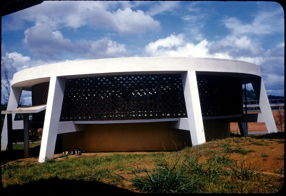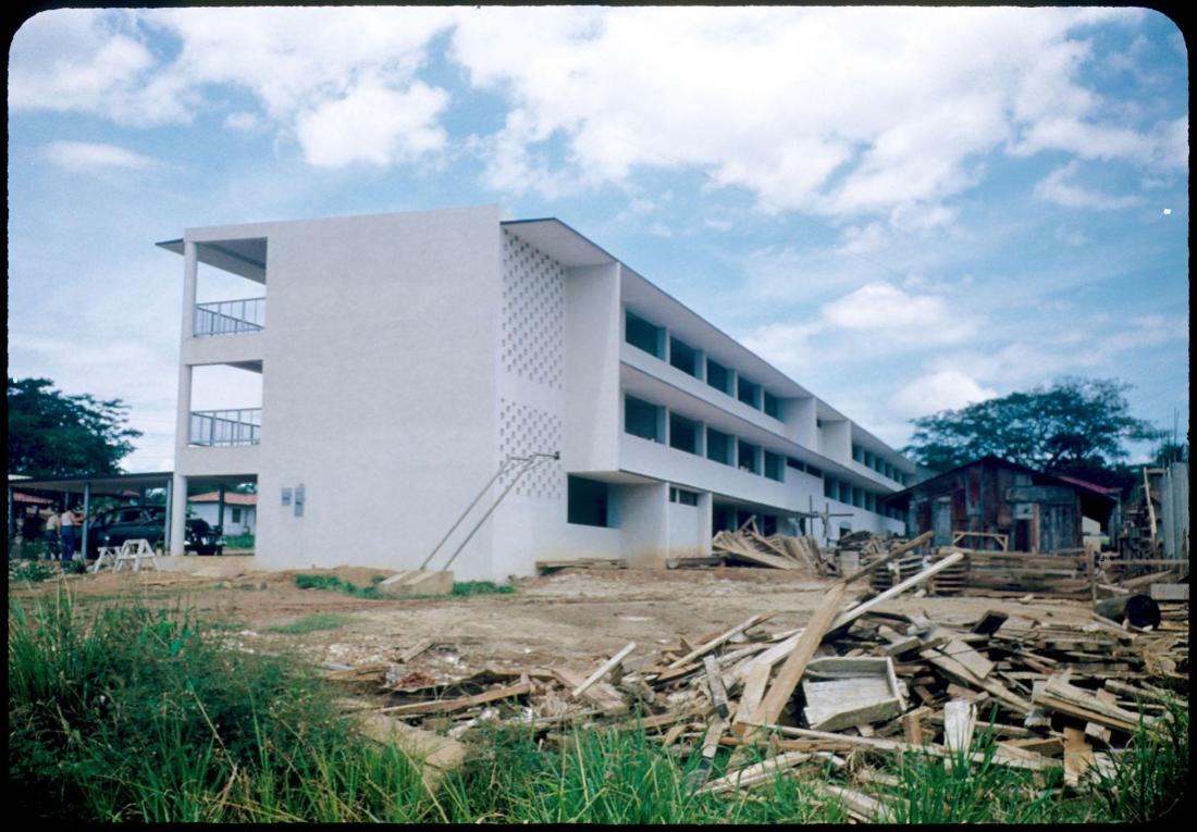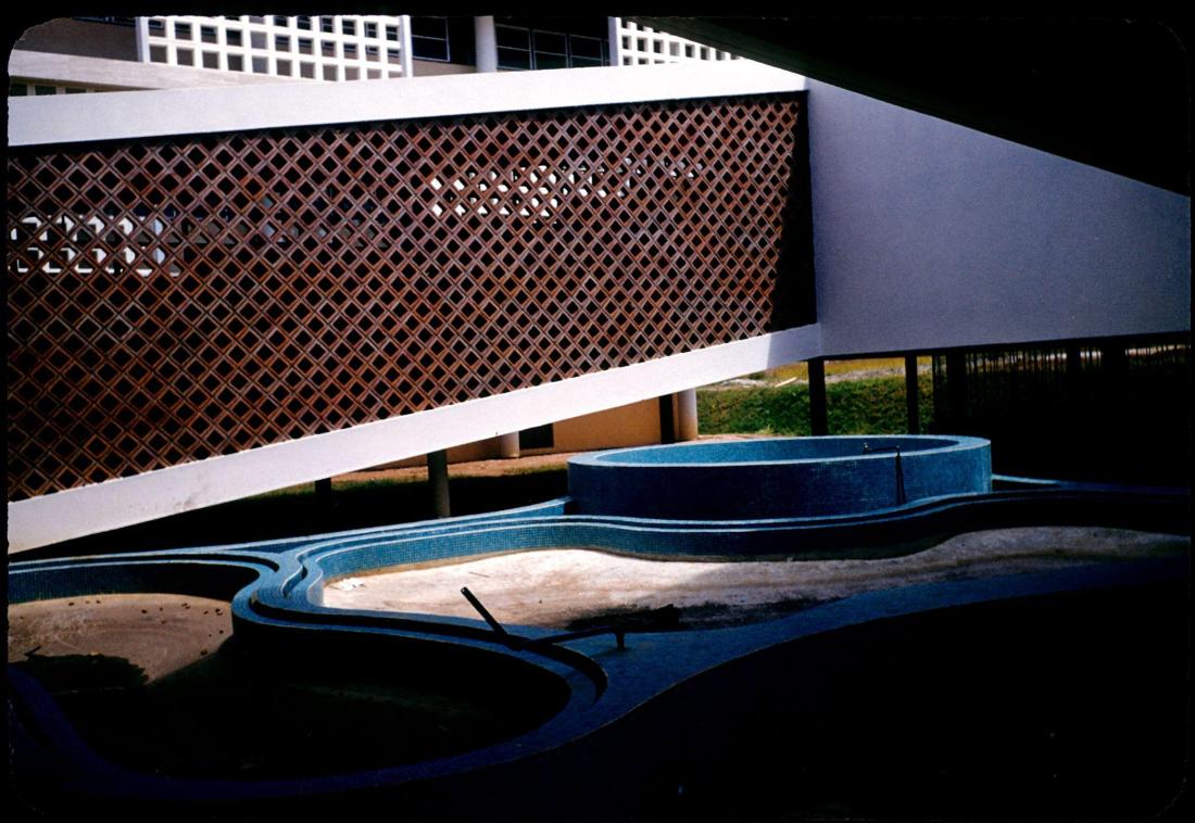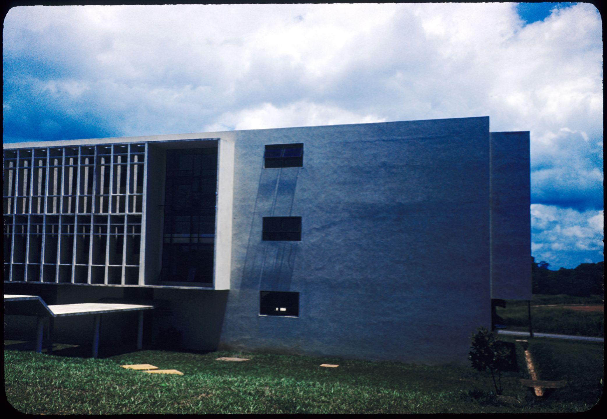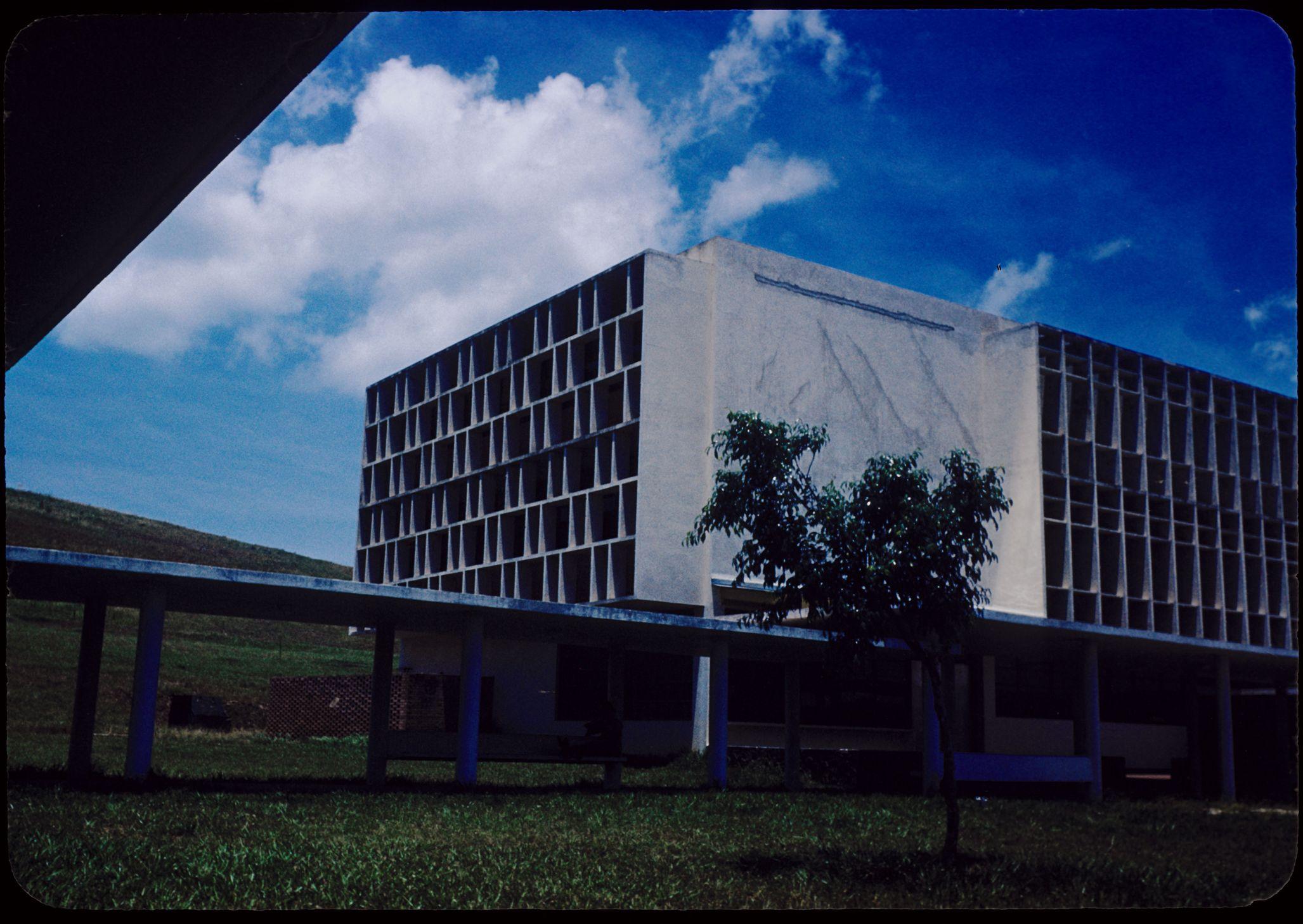 Ya pasando a las diapositivas tomadas en 1956, regresamos a la Universidad de Panamá, esta vez para ver el anexo a la Facultad de Ciencias (de Roux, Bermúdez y Brenes, 1960). Mírenme todos esos detalles corbusianos y esos materiales y acabados nobles y diversos. En esta visita, el anfitrión fue el mismo Ricardo Bermúdez (identificado gracias al colega Héctor Ayarza, experto en all things Ricardo Bermúdez).