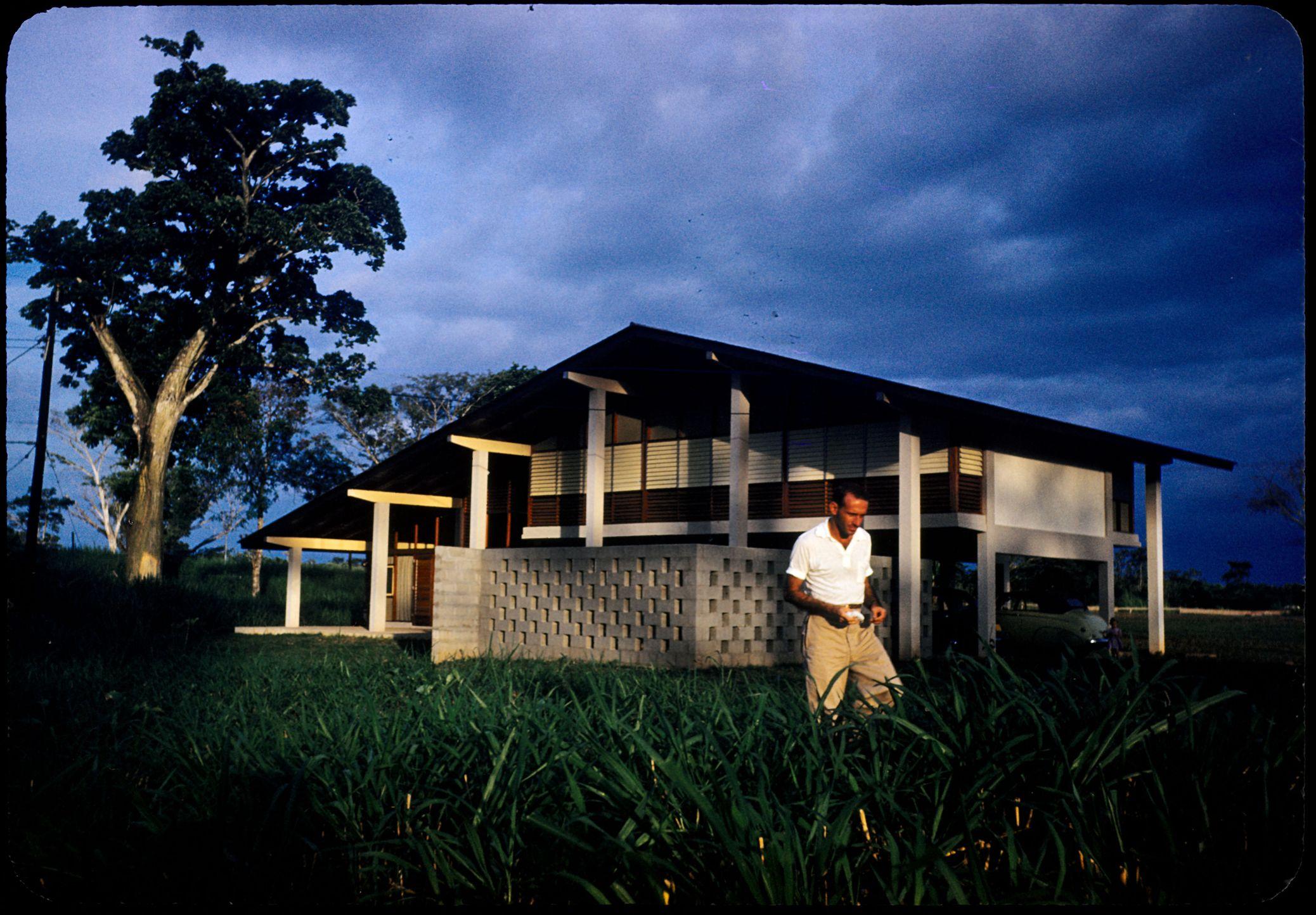 La conexión panameña es que Currie fue el director fundador del Centro Interamericano de Vivienda (CINVA), un proyecto creado en 1951 por la Organización de los Estados Americanos, donde el buen Guillermo de Roux también fue arquitecto. Ambos colaboraron en la sede del CINVA en Bogotá: de Roux como diseñador y Currie como capitán y paisajista. De hecho, de Roux aparece en varias de las diapositivas tomadas en 1951. Una de ellas, que seguramente todos ustedes, nerds de la arquitectura, recuerdan de cuando fue publicada por Panamura en 2022, se llama House by Guillermo de Roux for his Brother.