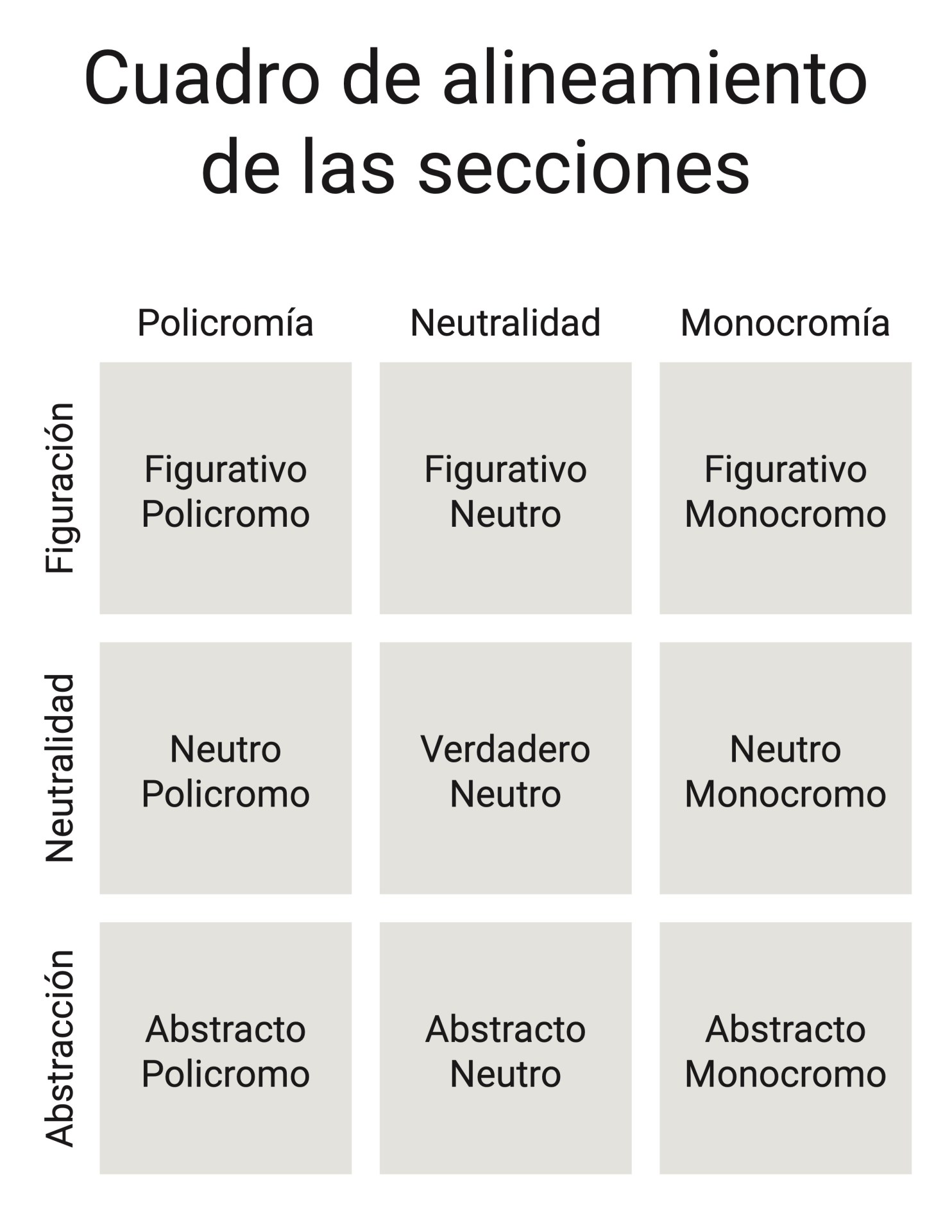 Mi propuesta curatorial para la Subasta MAC 2025 se llama Índice, y busca armar un mapa gráfico de lo que está pasando y lo que ha pasado en el Arte de Panamá: así de amplio y abierto. El ejercicio partió, como toda exhibición, de un proceso de selección, el cual en esta ocasión sigue un criterio sencillo: incluir obras que a mí me encantaría tener en mi casa. Para la siguiente etapa, la clasificación de las piezas, se diseñó un proceso mecánico y cerebral para neutralizar los impulsos temáticos y pasionales que generalmente afectan los proyectos expositivos. En esta ocasión se utilizó un sencillo cuadro de alineación que permitió clasificar cada pieza según su posición en dos ejes: figuración–abstracción y policromía–monocromía. Nota bene: cualquier parecido con el cuadro de alineación de Calabozos y Dragones es mera coincidencia. Estos nueve cuadrantes se convirtieron en las secciones en las que se divide la subasta de este año. Este sistema de clasificación, extremadamente simple, pretende ser tan entendible como organizar las piezas en orden cronológico o alfabético. Esta noche veremos si resulta.