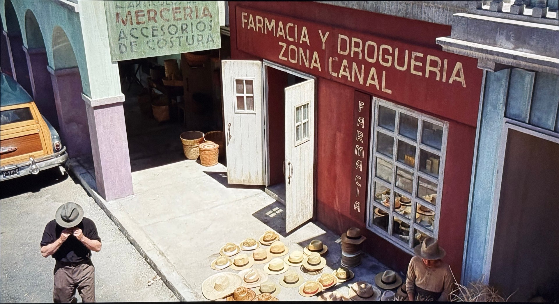 Y una farmacia y droguería llamada Zona Canal con un montón de sombreros al frente (por si no la habían captado). Lee prende un bate y Allerton le consigue una botellita de paregórico.