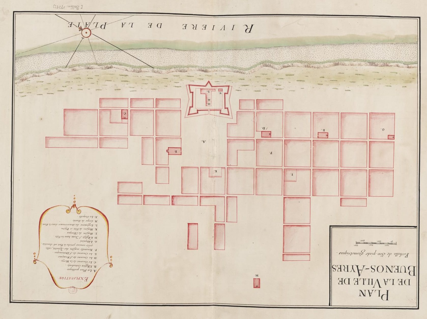 Pero lo más interesante es que en el álbum Cartes et plans de l’Amerique en la LoC también hay una copia de este plano, que tampoco tiene firma. Mírenmelo acá: