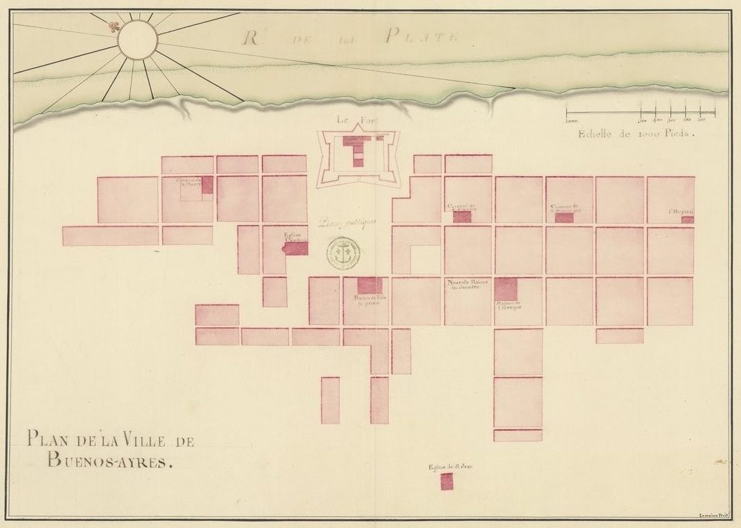 En la BnF hay otros planos por Lemoine que tienen contrapartes en el álbum Cartes et plans de l’Amerique en la LoC. Por ejemplo, este es el Plan de la Ville de Buenos-Aires, firmado por Lemoine: